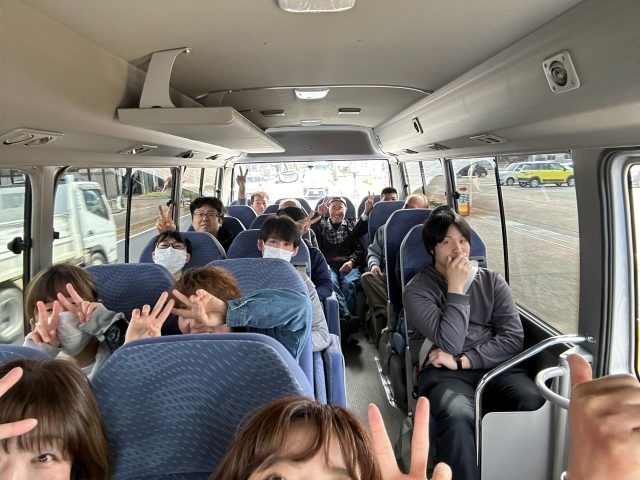 行きのバスは終始賑やか♪ワクワクしながら寺泊に向かいました。