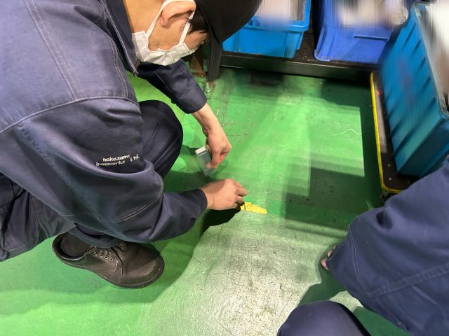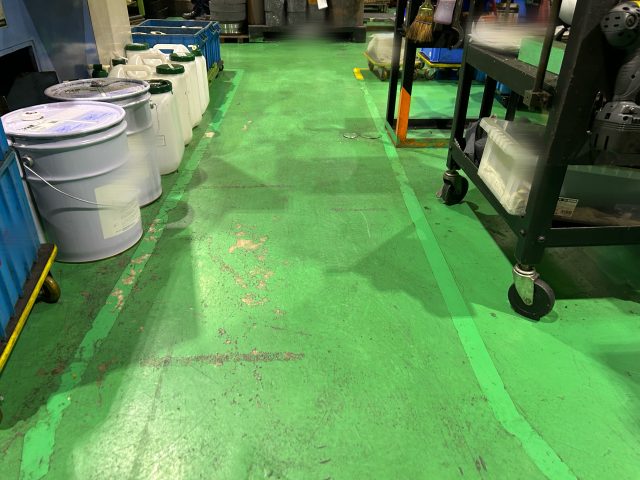 2025年最後の5S活動では工場内の区画線剥がしを行いました。 新しい区画線は、年末の大掃除に張り直す予定です。