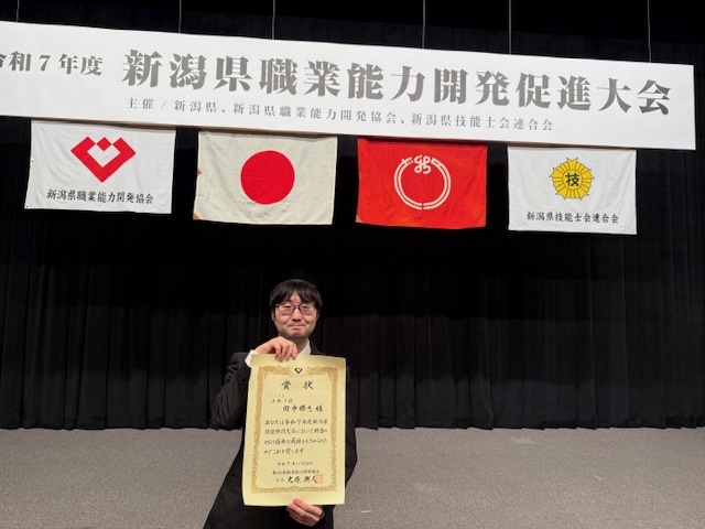 令和7年度 新潟県職業能力開発促進大会において、 弊社社員が マシニングセンタ作業2級にて県内1位となり、技能検定成績優秀者として新潟市民プラザ(NEXT21)にて表彰されました。